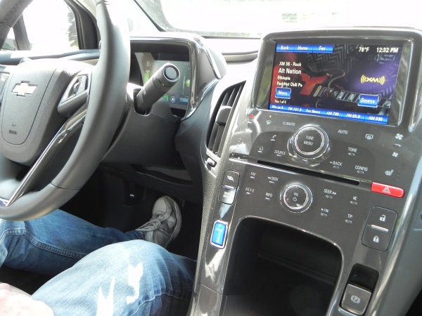 Bob test-drove a few trucks. When we got there, I was distracted by the sweet new Chevy Volt just delivered to the dealership.