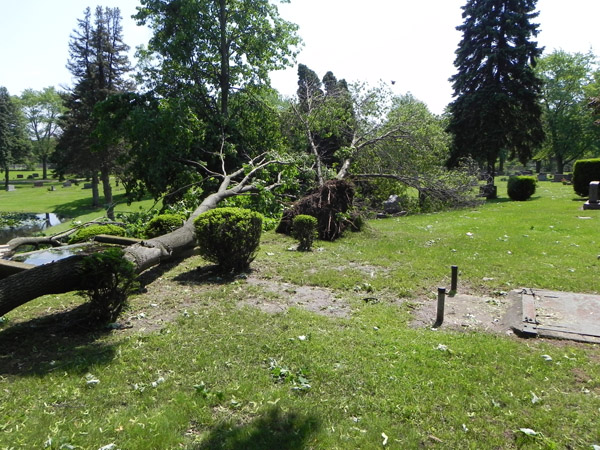 These photos were taken on Memorial Day. We stopped out at Memorial Gardens to see Bob’s kin and check out the damage from the storm.
