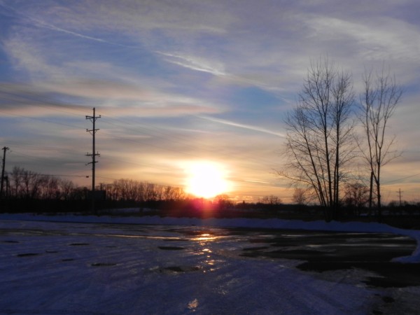 Today was sunny and fairly warm at 28 degrees. I wanted to take photos of the sunset to show that there is occasionally sun in Michigan. Much better than yesterday, with three or so inches of snow and terrible roads on the way to the hospital. Bob Sr. went in for surgery last night, and did very well! Dr. Garcia did a complete hip replacement. When Bob and I went to see him tonight after work, he seemed so much better.