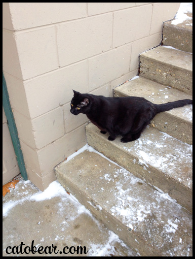 Miss Cato the Bear was quite surprised when I carried her to the front porch and she saw all the snow.